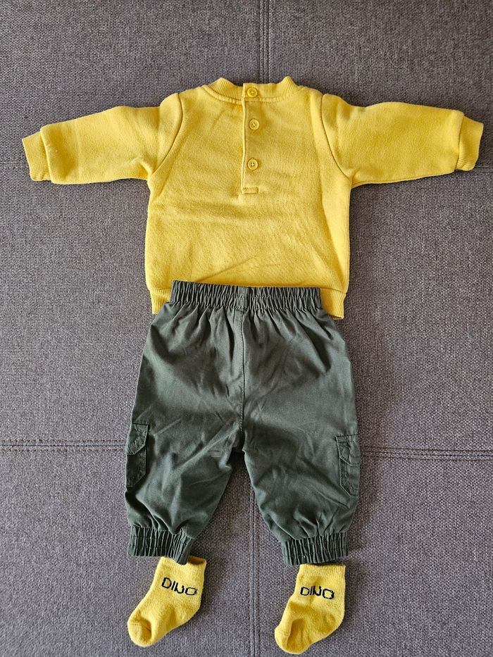 - 1 pull jaune taille 3 mois - 1 pantalon cargo kaki taille 3 mois - 1 paire de chaussettes taille 3 mois