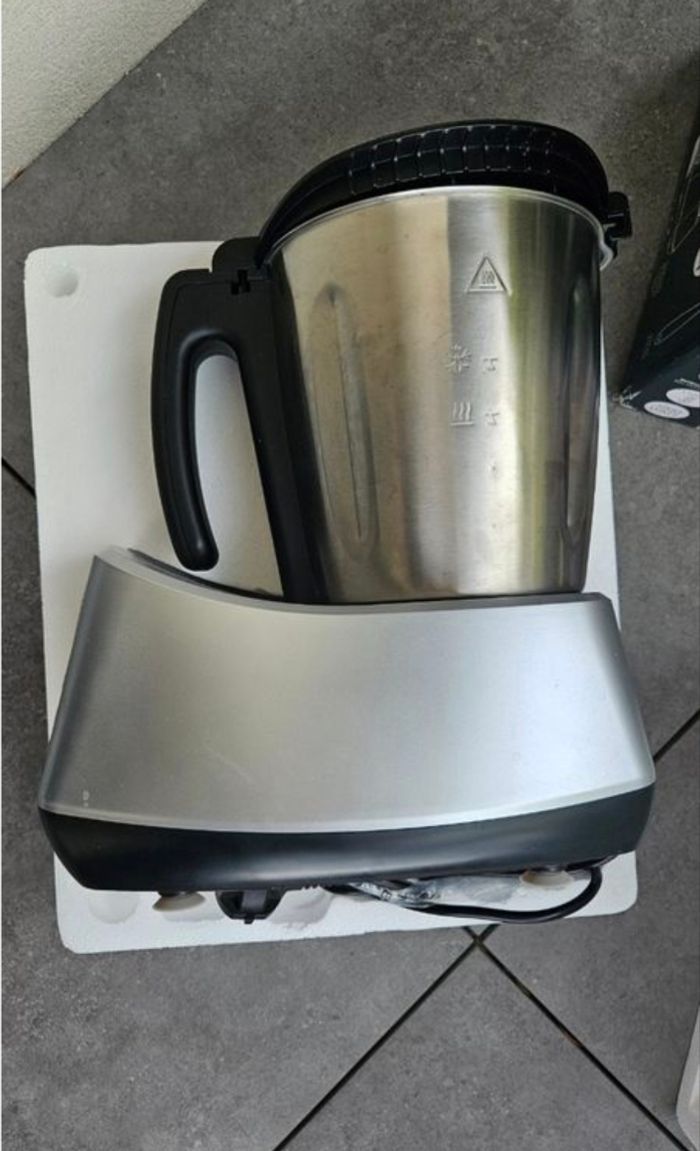 Je vends mon robot cuiseur multifonction utilisé environ 4 ans. Payé 160 €, il est globalement en très bon état : la balance fonctionne, la connexion Wi-Fi et avec l’application aussi, et le panier vapeur est impeccable.