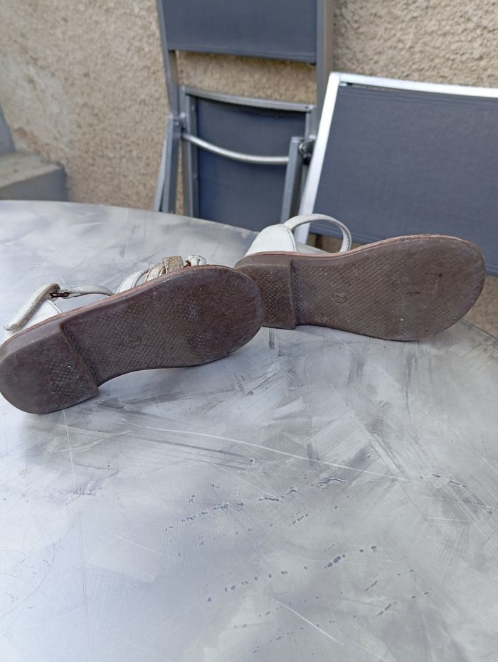 Je vends c est 2 paires de sandales pour enfant. Des sandales confortables et élégantes, parfaites pour l'été. - Type de produit : Sandales - Univers : Enfant - Pointure : 23 - Couleur : Camel et doré - Couleur : blanc et argenté - Matière : Cuir, détails tressés 10€ la paire acheter chez Spartoo N'hésitez pas à me contacter si vous avez des questions !