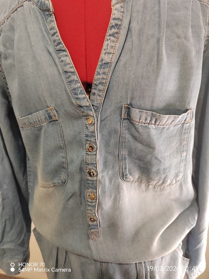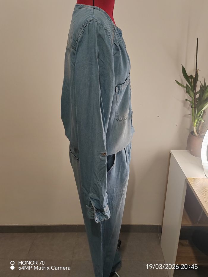 Combinaison fluide Manches longues retroussables Largeur à plat sous les aisselles 54 cm Largeur taille sous le ventre à plat de 44 a 49 cm Longueur taille /cheville 103 cm Poches sur les cotes et sur le devant #geliscyrilletailleXL #geliscyrilletaille42 #geliscyrillemater Ref3/ca16