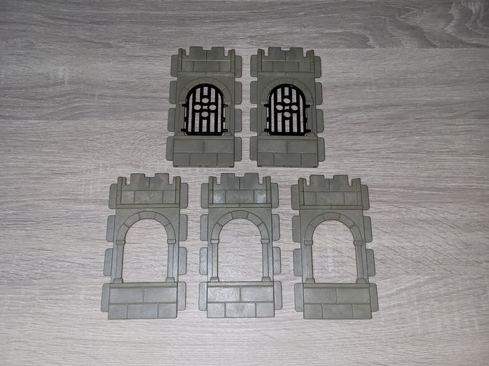 Vend lot de 5 pièces de mur de château fort playmobil en bon état juste des signes d'usures liés au jeu (voir photos). Vendu tel que sur la publication.