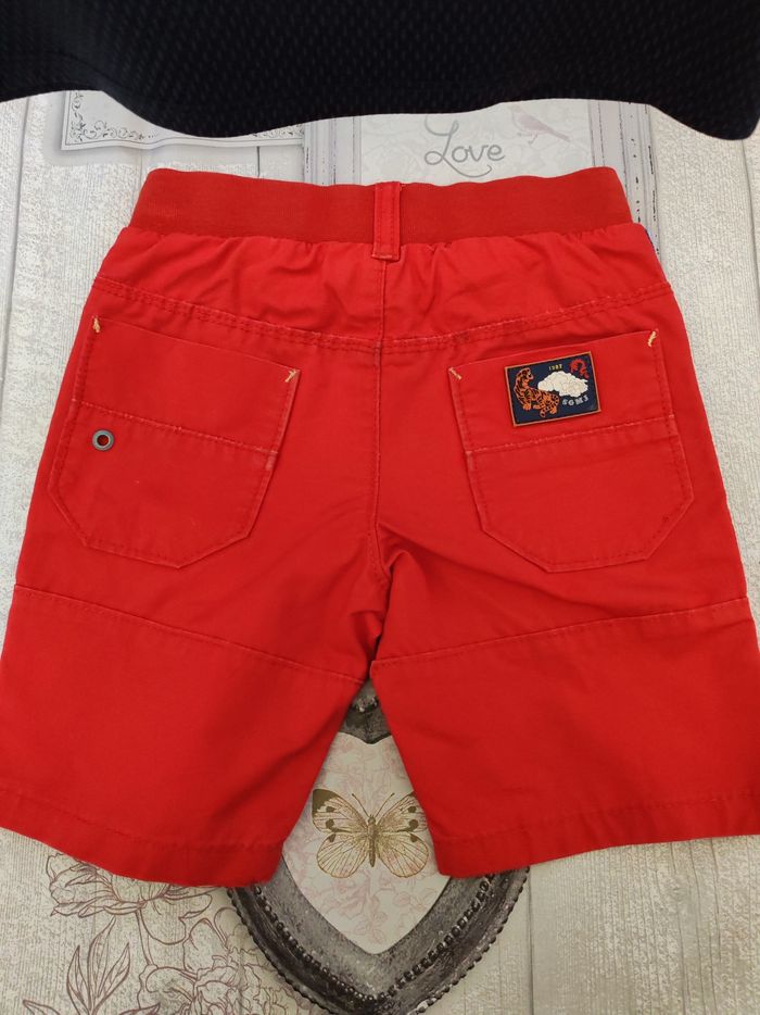 Ensemble tee shirt et short en taille 3 ans, short de marque sergent major de couleur rouge en très bon état, et tee shirt bleu marine, de marque Kiabi éco-conception, en très bon état