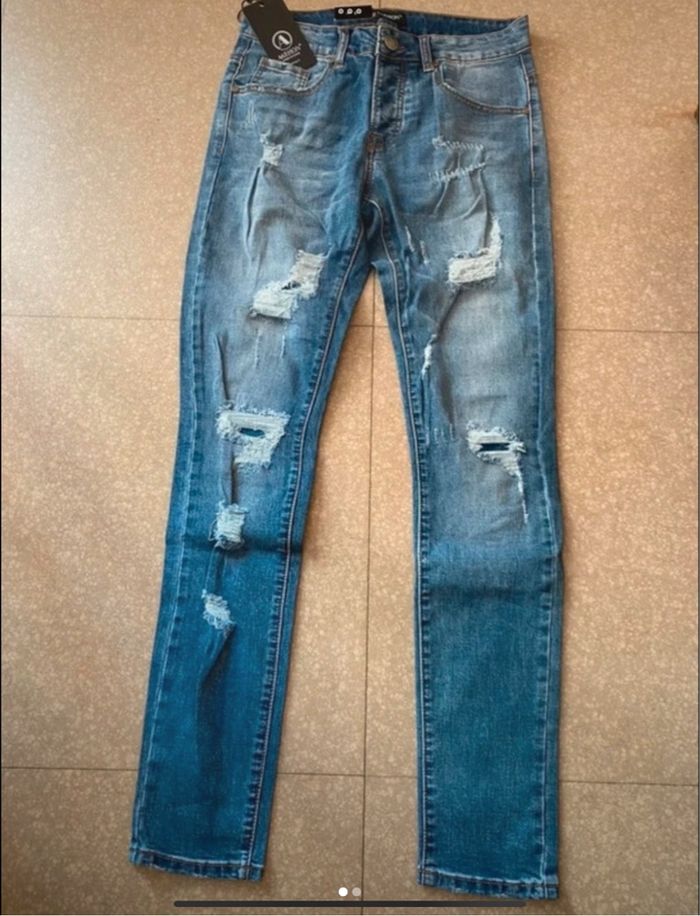 👖 Jean homme: 📏 Taille : 38 avec déchirures tendance. Coupe ajustée, confortable, parfait pour un look urbain / streetwear.