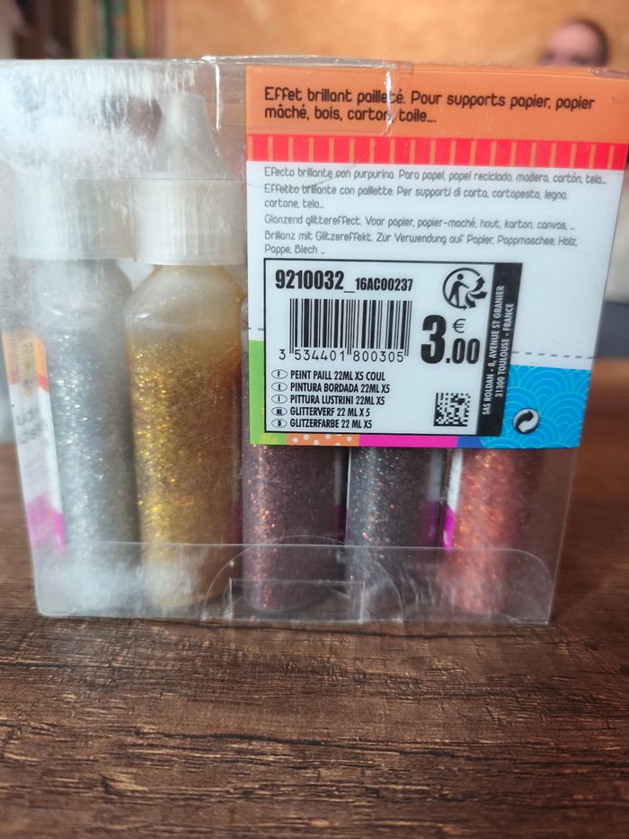 ​✨ Lots de Peinture Pailletée - Neuf ✨ ​Idéal pour les activités créatives des enfants, le scrapbooking ou la personnalisation d'objets ! ​Chaque boîte contient 5 flacons de 22 ml. ​Utilisable sur papier, carton, bois, papier mâché, toile... ​Prix : 1,30 € la boîte ​ ​#loisirscreatifs #peinture #paillettes #DIY #activiteenfant #beauxarts #scrapbooking #customisation #loisirs #neuf #petitprix #peinturepailletee #creativite