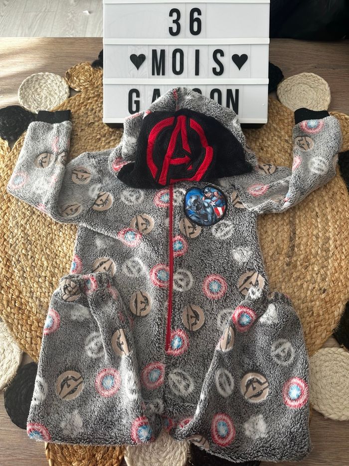 Sur pyjama Avengers chaud en très bon état. Légèrement bouloché au niveau des 2 manches. Peu servi.