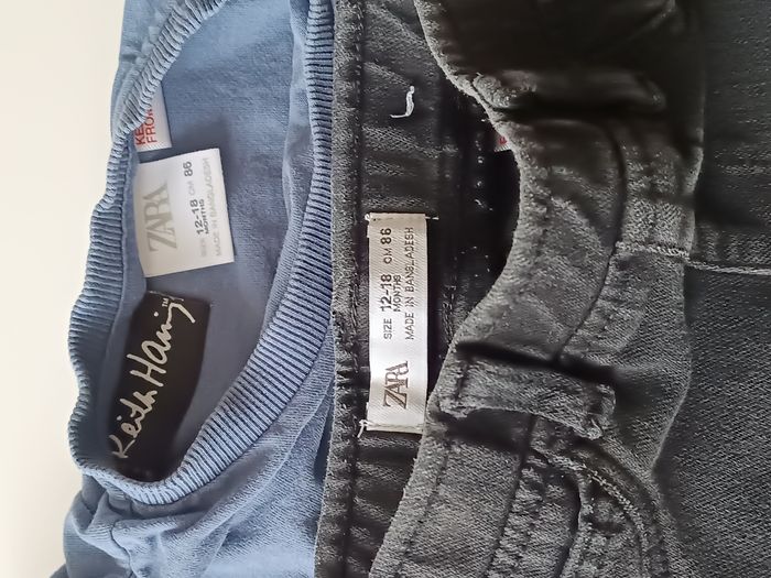 Lot ensemble mi saison T-shirt manches longues bleu Jean slim noir Zara 12-18 mois | 86cm