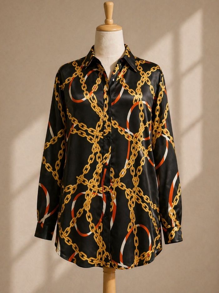 Chemise élégante bleu marine à pointillés pour femme, taille 42