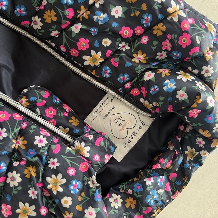 Doudoune fine sans manches à fleurs en parfait état. Taille 18/24 mois.
