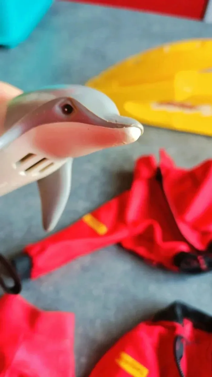 L'une des veste est abîmée, le scooter et le dauphin fonctionnent.