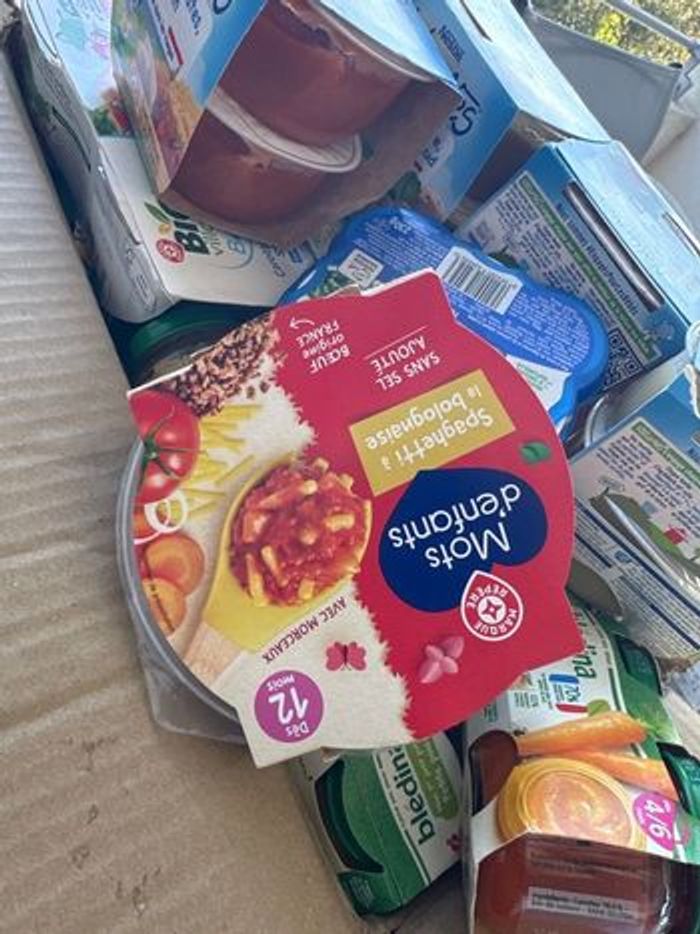 30 Petits pots. Petits légumes, pommes de terre lieu. 2 petits pots carottes, polenta, saumon 2 petits pot tomates, boulghour saumon 2 petits pots haricots verts 2 petits pots petits pois. 2 petits pots, pâtes épinards pomme de terre ricotta 1 plat spaghetti à la bolognaise 1 bledichef artichauts épinard saumon pacifique 2 merlu semoule épinard 4petit légume pomme de terre lieu 2 épinard semoule saumon sauvage 2 jardinière de légume saumon