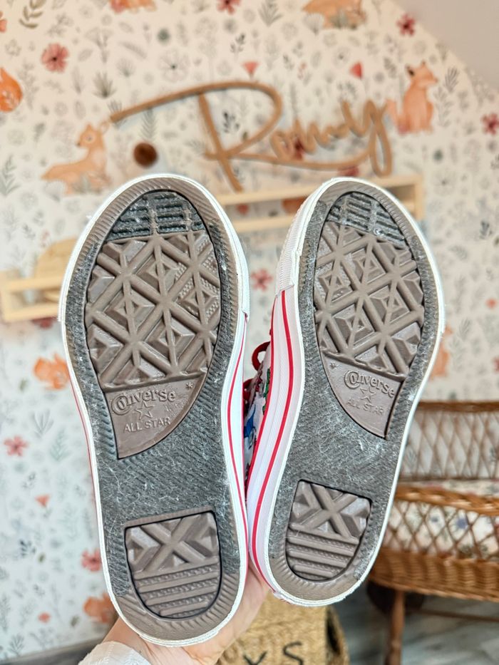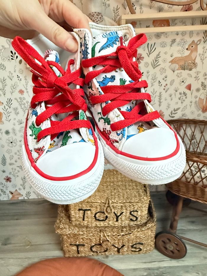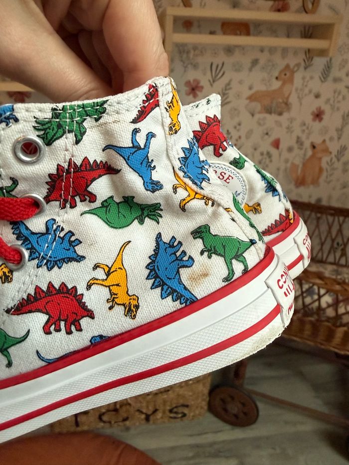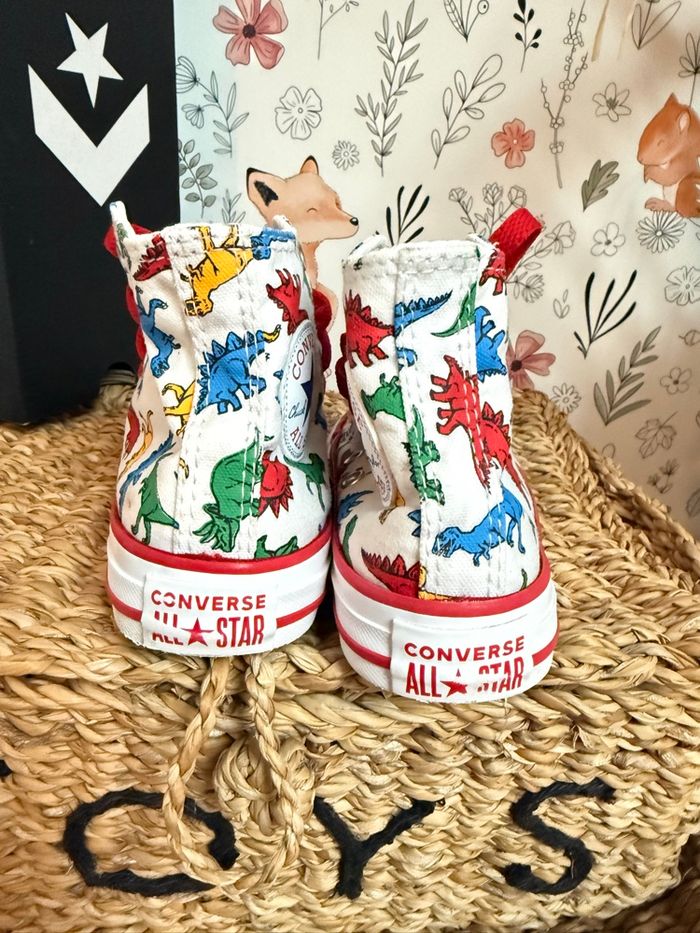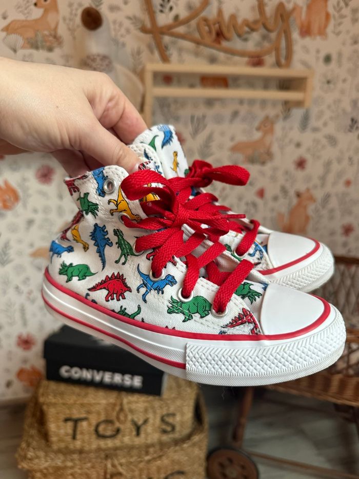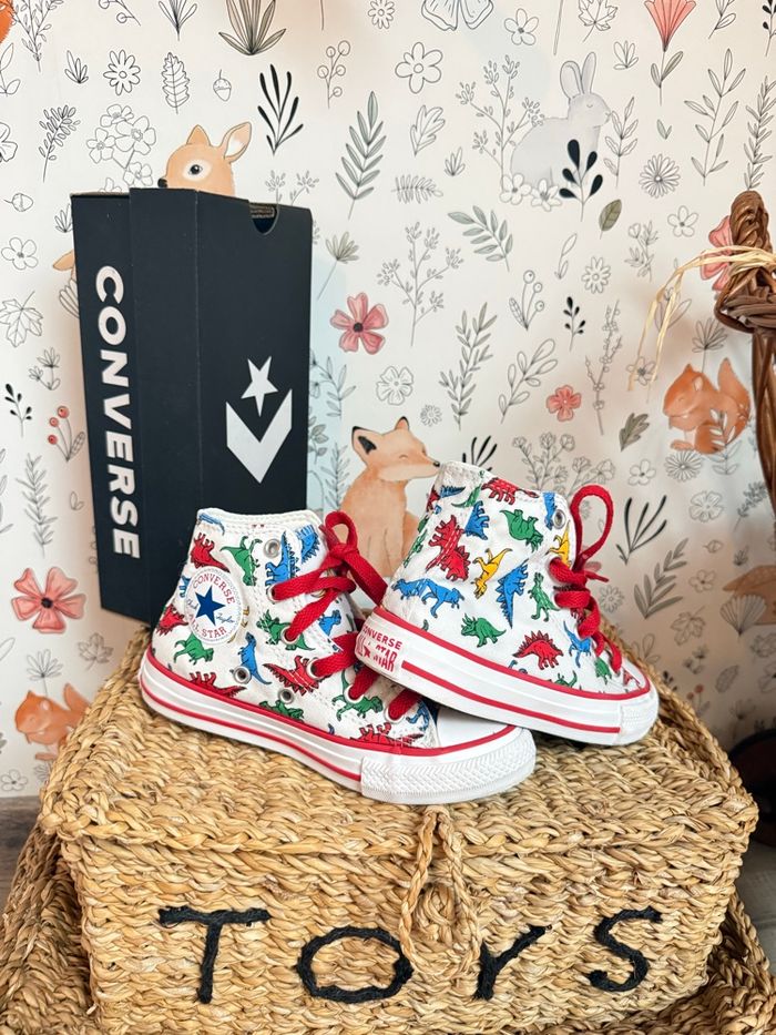 Paire de converse haute en édition limité dinosaure ! Acheté aux états unis Taille 29 Très bon état voir excellent car mon fils les a porté 3-4x grand max ! Vendu avec boîte d’achat d’origine Modèle unique ! Coloris blanc et rouge Qq traces par endroit cf photo N’hésitez pas à visiter mon dressing ! New balance 530, basse, dunk Nike, vans knu, Asics, Adidas, CampUs, gazelle, air force, claquette