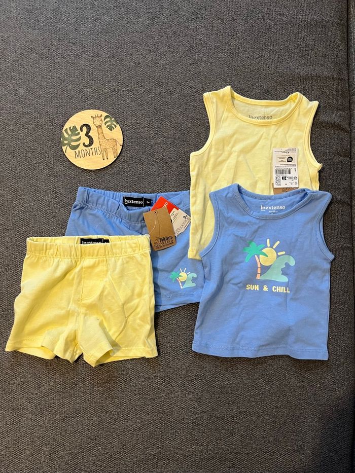 Lot de deux ensembles bébé garçon Short + débardeur Neuf avec étiquette Taille 3 mois In extenso #ensemble #ensemblebebe #ensemblebébégarçon #ensembleétégarcon #inextensogarcon #inextenso #ensemble3mois