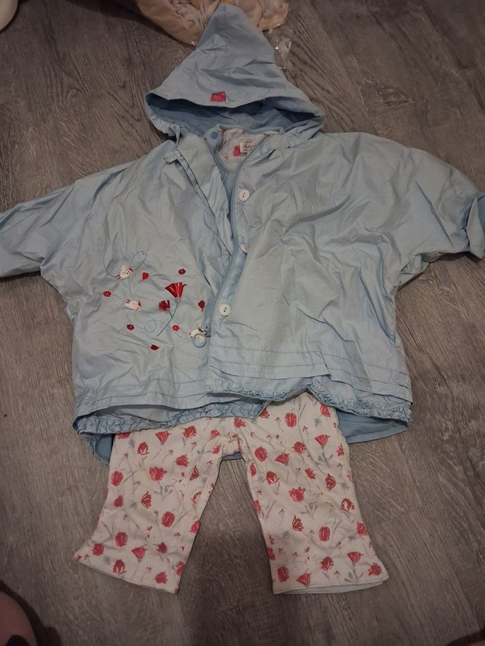 Manteaux type imper doublé coton + haut manche longue doublé + leggins + chaussette