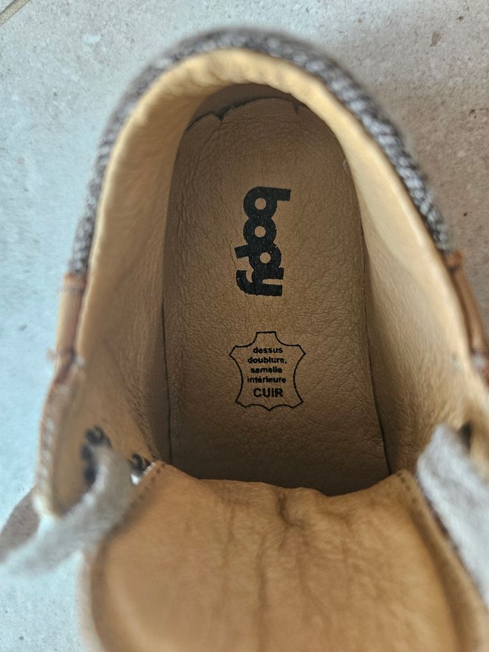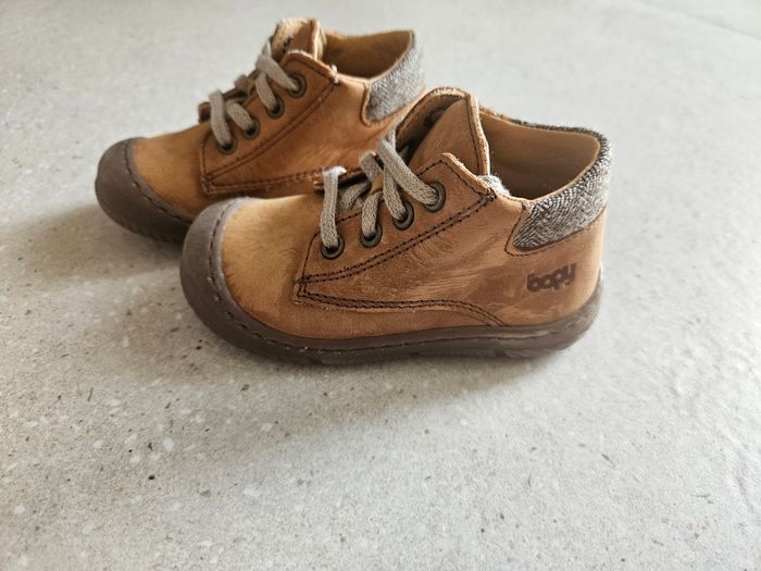 Bottines en cuir garçon En très bon etat, juste le cuir un peu effacé car le bébé a rampé avec Porté une fois, devenu vite petit Pointure 20 Marque bopy
