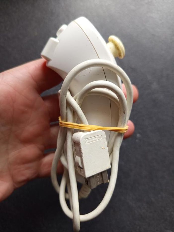 Le Nunchuk est vendu seul. Produit officiel Nintendo en état correct. Il y a quelques "taches et rayures" d'utilisation normale. Il est de couleur blanche. Le joystick est très jaunie. Fonctionne sans soucis. Plusieurs en stock, n'hésitez pas à demander.