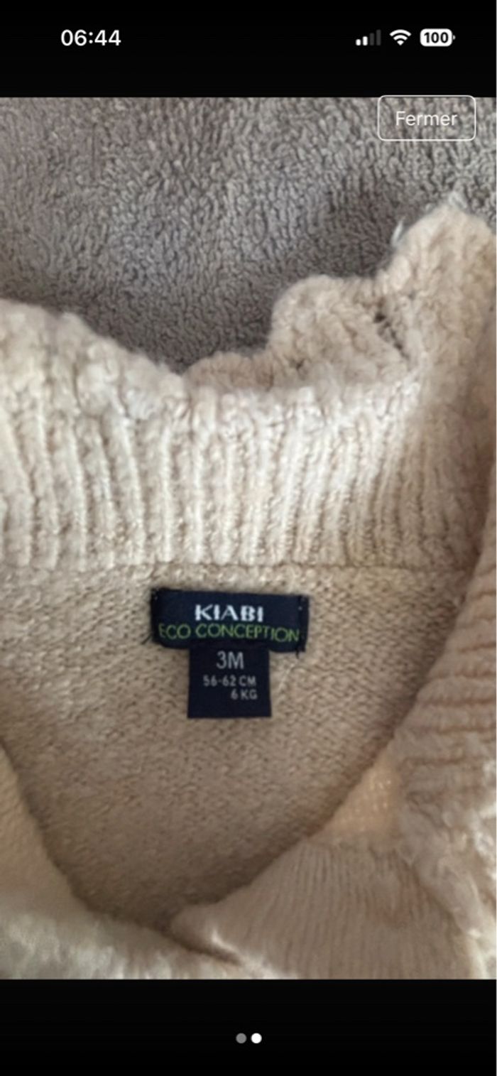 Pull col rouler style cachemire marque kiabi taille 3 mois