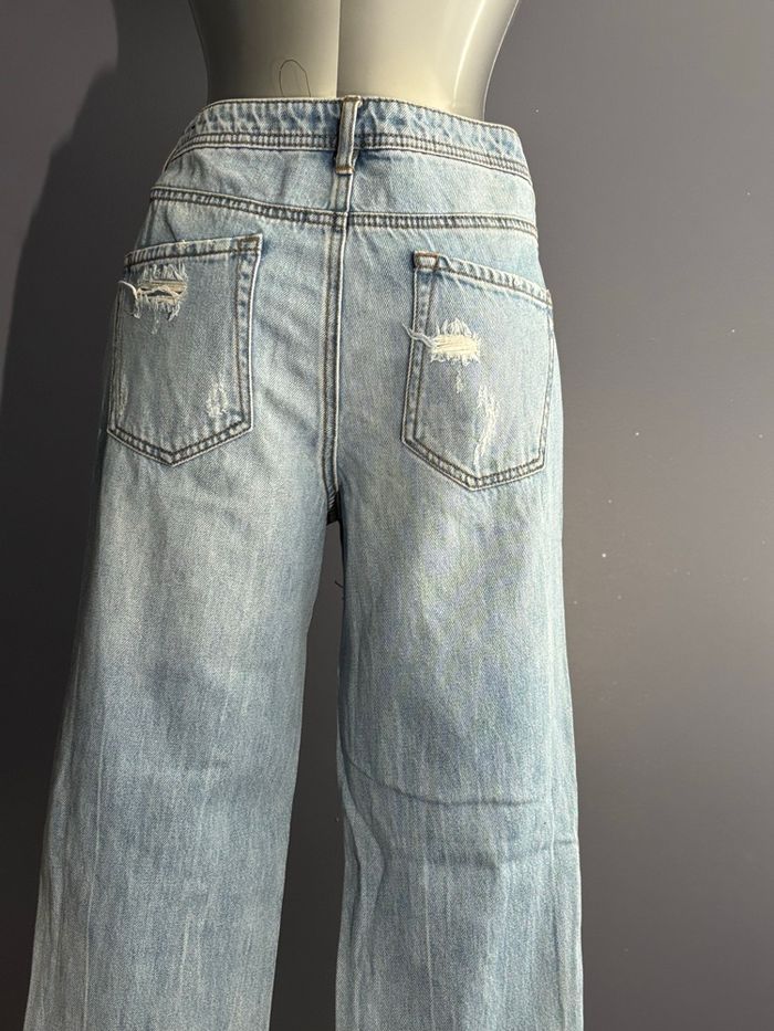 D78 Jean cropped flare noir Stradivarius - taille 34 - taille haute coupe bootcut
