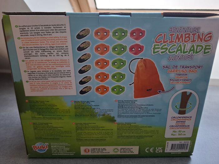 Kit neuf pour initiation à l escalade Contient 6 sangles et 12 prises + sac de transport Valeur 34€ Marque buki