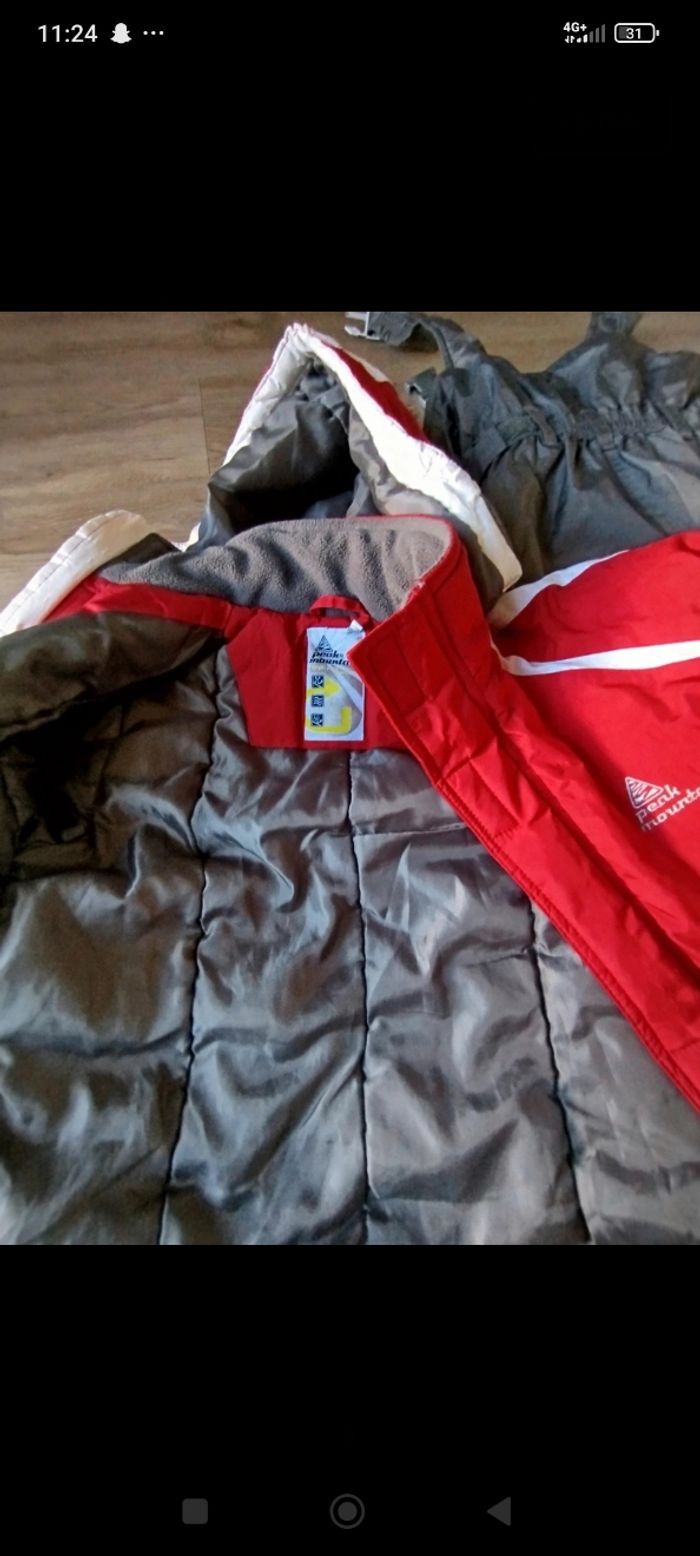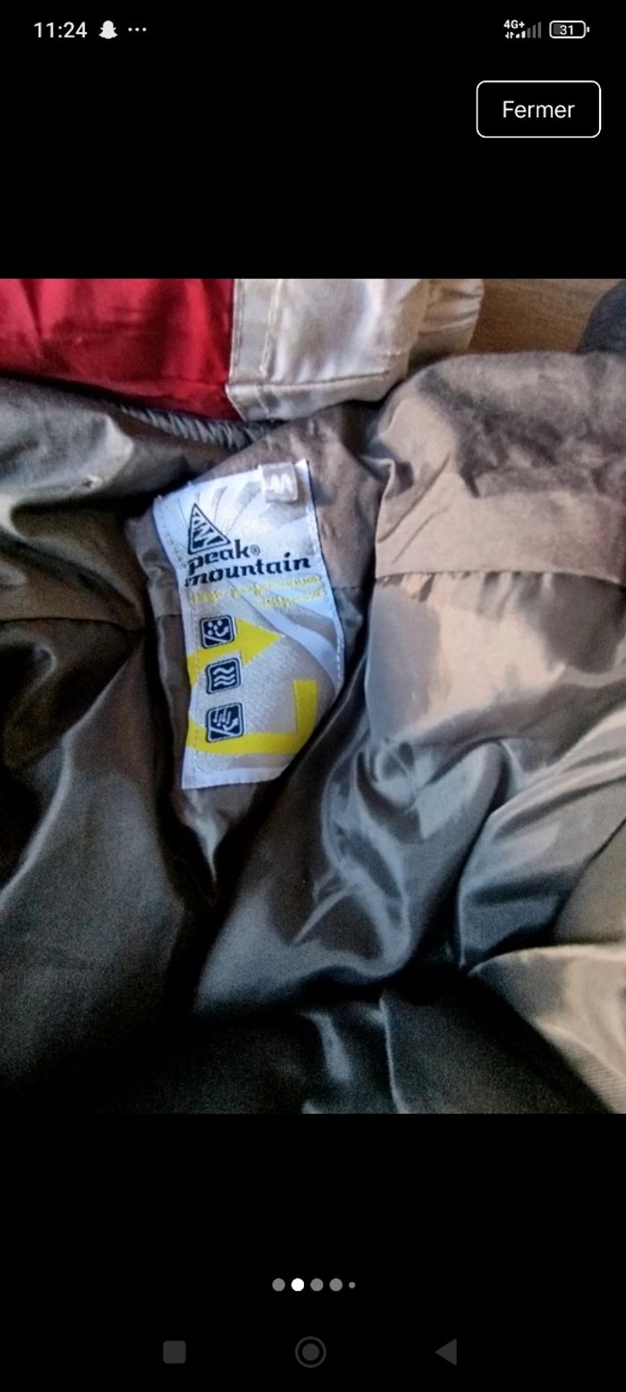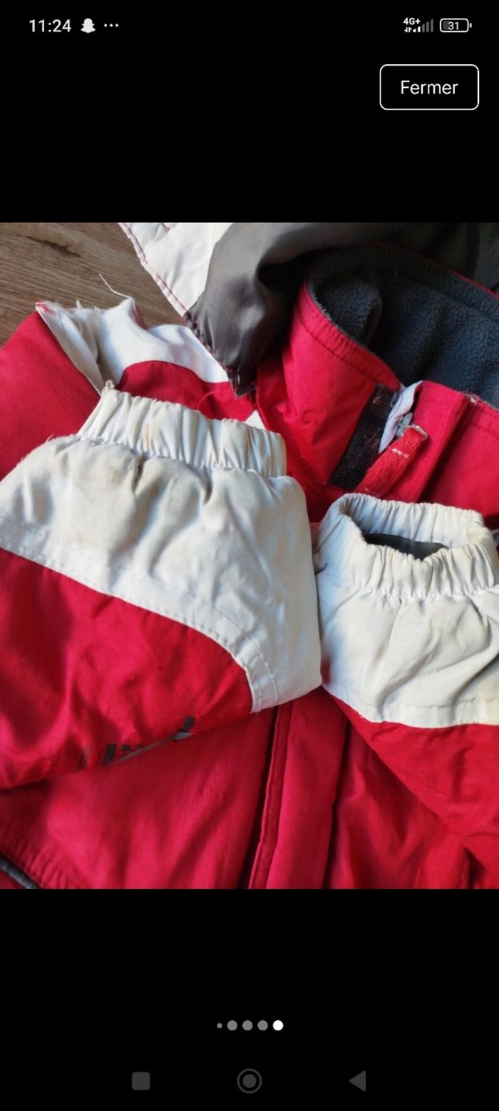 Ensemble de ski peak mountain. La salopette n'a jamais été portée, neuve. Le manteau a été porté et a besoin d'un petit point au niveau de l'épaule car décousu et bas de manches un peu sales(voir photo). Mais reste en très bon état