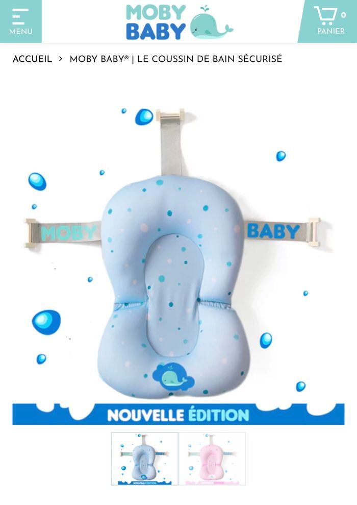 Doux et confortable, le MOBY BABY® a été conçu afin que votre bébé ait une posture adéquate durant son bain, sans que vous ayez besoin de le tenir constamment et sans craindre qu'il se retourne. Il appréciera également de ne pas avoir le corps directement en contact avec la paroi rigide d'une baignoire. La plupart des parents se plaignent d'un mal de dos intense après avoir donné le bain à leur enfant. Grâce au maintient parfait du coussin MOBY BABY®, vous pourrez préserver votre dos ! Équipé d’un repose-tête rembourré qui garantit le soutien du crâne et de la colonne vertébrale du bébé, il vous permettra ainsi de garder les deux mains libres pour le laver aisément et jouer avec lui.