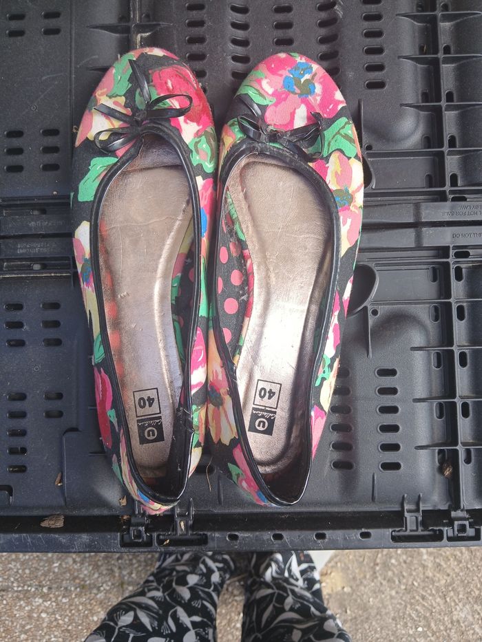 Bonjours ! Je vends cette paire de ballerines en bon etat général. Mise quelques fois. Je les vends en l'état, je ne sais pas si elle passe en machine.