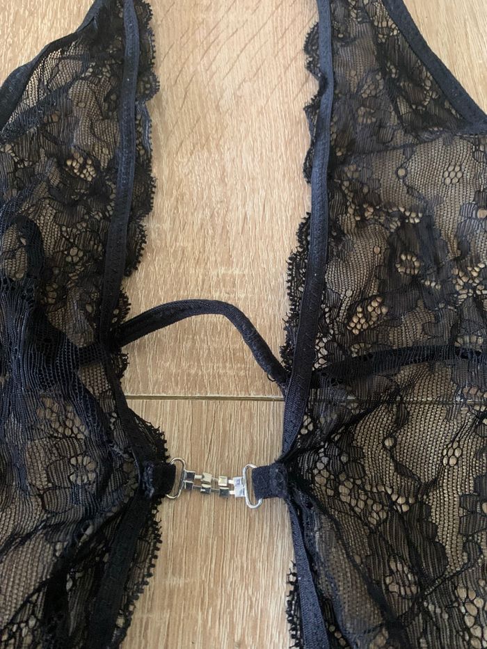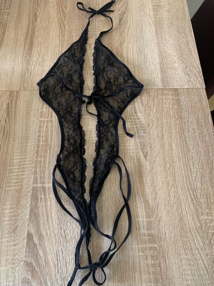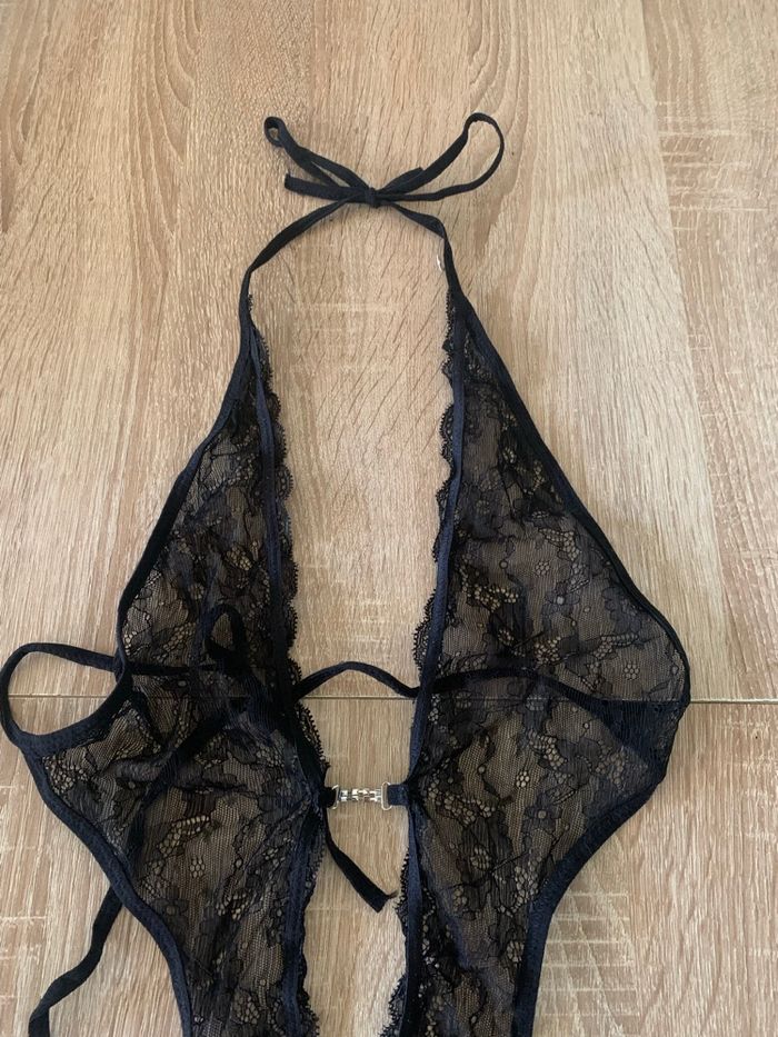 Body en dentelle ouvert en bas et dos ouvert. N’a plus d’étiquette de matière, taille et marque Envoi rapide et soigné
