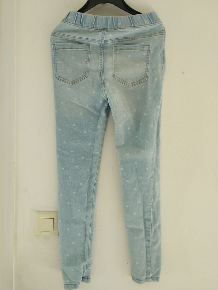Pantalon bleu motif coeur délavé