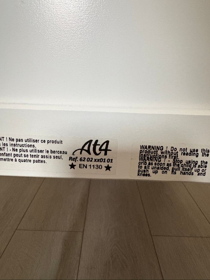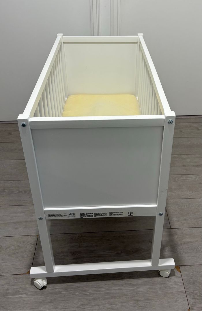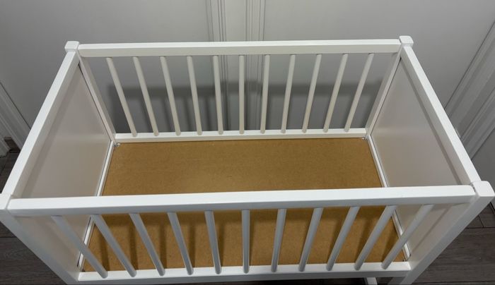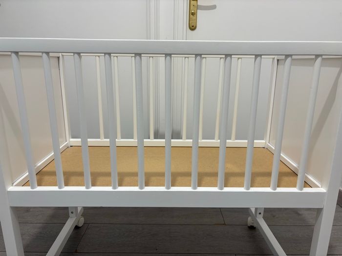 Lit berceau blanc en bois 80x40 cm vendu avec linge de lit