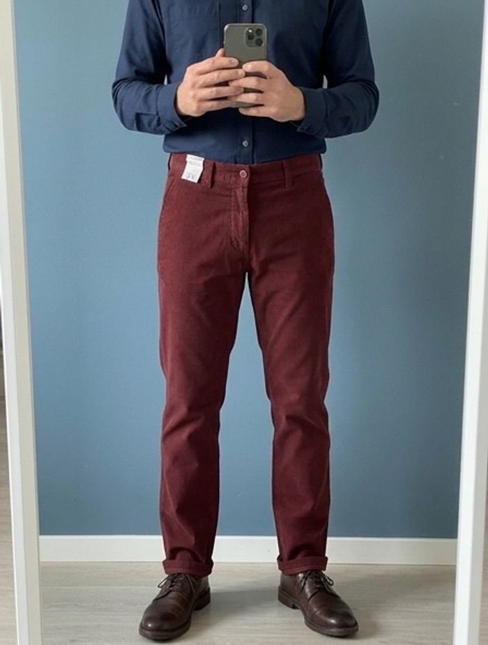* Superbe pantalon chino homme couleur bordeaux. * Coupe droite, parfait pour un look décontracté ou habillé. * Taille : S * État : très bon état * Colis soigné * Envoi rapide N’hésitez pas à demander plus d’informations