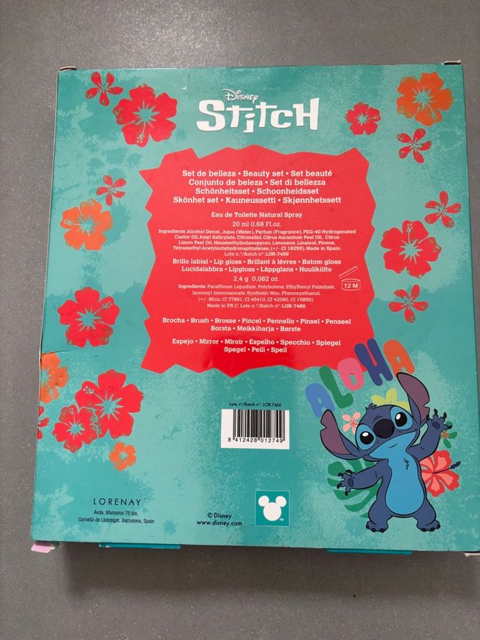 Set beauté stitch Comprenant : Une eau de toilette 20ml Une palette de brillant à lèvres avec miroir Et une brosse