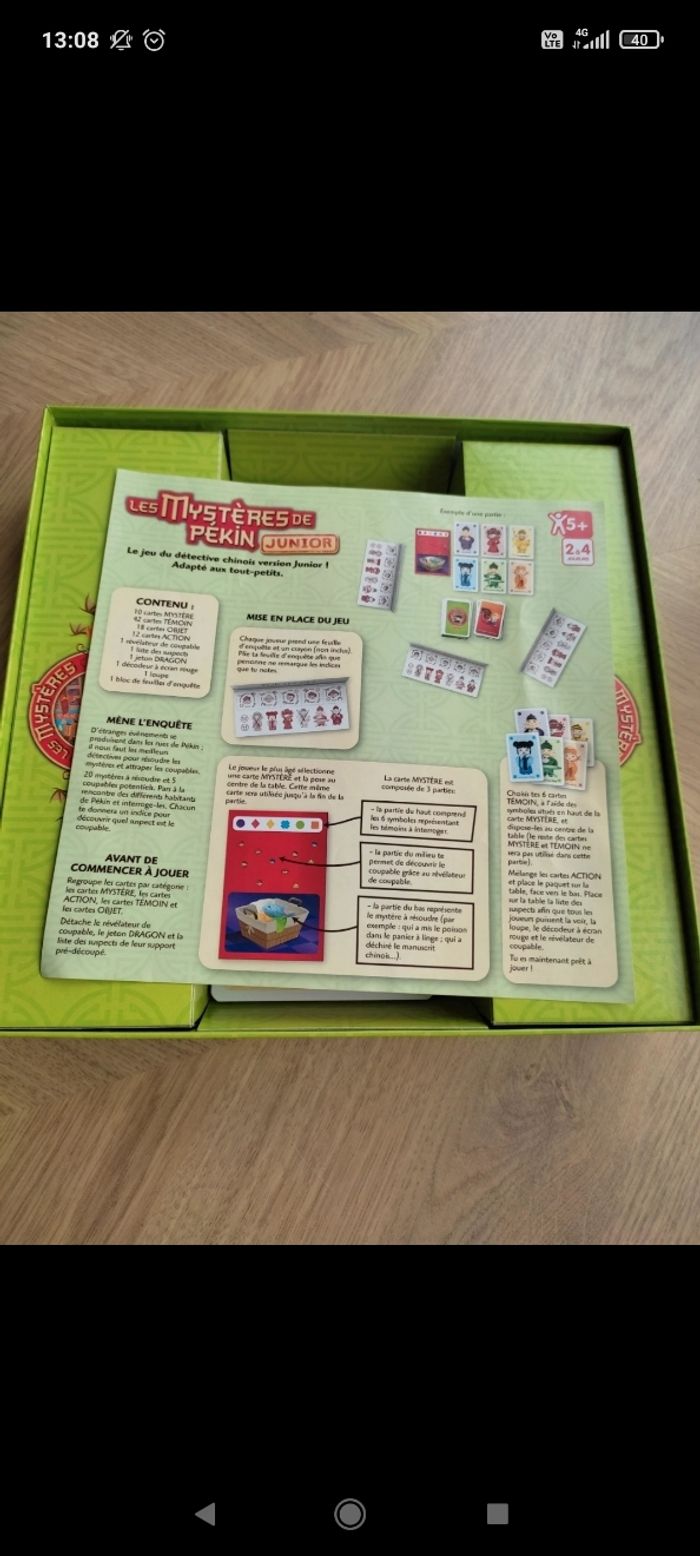 Jeu de société mystère de Pékin junior très bon état Il reste 4 feuilles vierges possibilité de les imprimer 5ans et plus