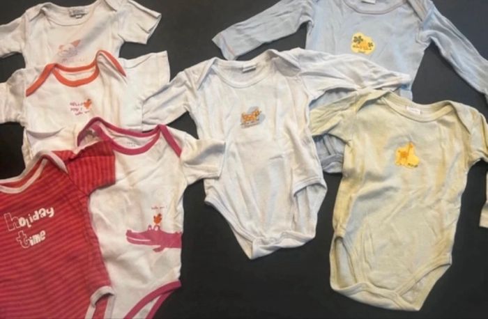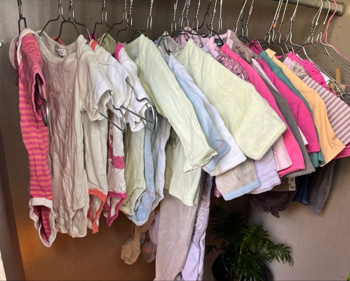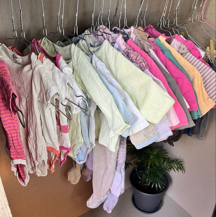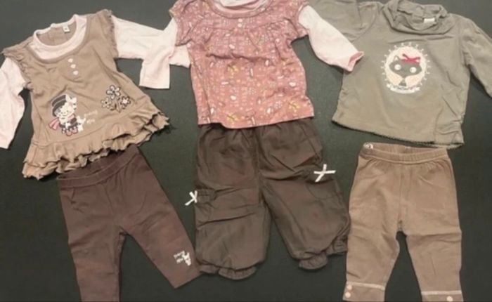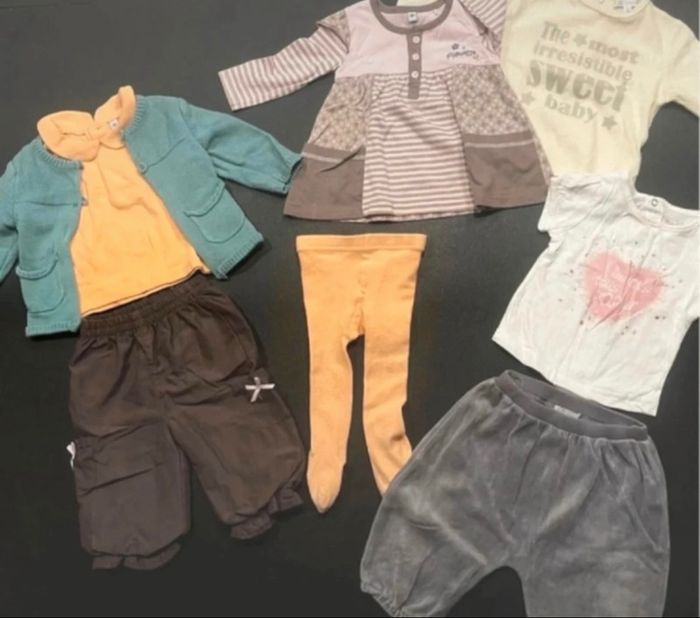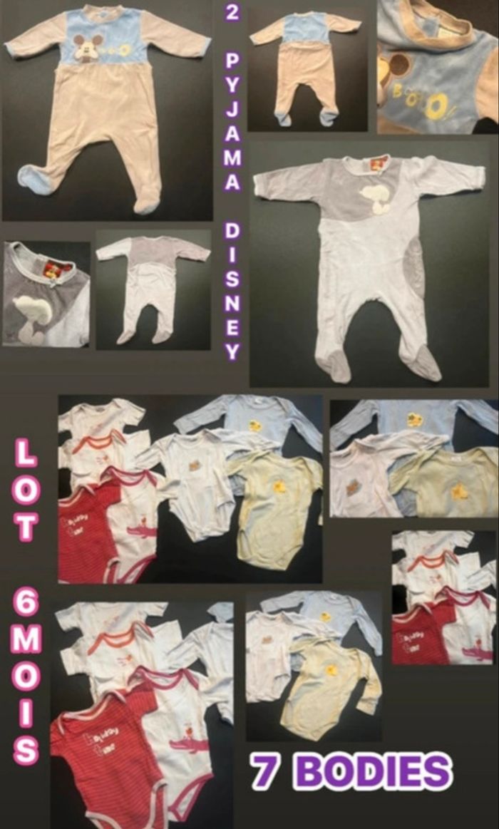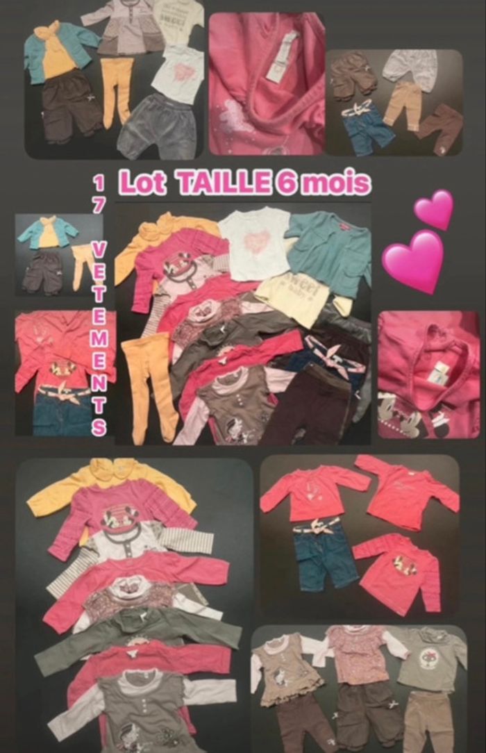 Description : Vêtements fille 6 mois – 26 articles ⚠️ 1 € l articles ou 20€ le lot idéal pour compléter la garde-robe de bébé. Marques : Lulu Castagnette, Disney, Baby Club, Babibou, Kimbaloo, Pik Ouic (et autres) Le lot comprend : 👖 5 bas : • 1 jean • 1 jogging • 2 leggings • 1 pantalon 👕 8 t-shirts manches longues dont : • 1 Lulu Castagnette • 1 Disney • 1 Okaïdi • et autres marques Lot de bodies 6 mois (7 pièces) • 3 bodies manches longues • 4 bodies manches courtes • Marques : Baby, In Extenso 🌙 Pyjama Snoopy – Taille 6 mois 🌙 Pyjama Mickey – Taille 6 mois – Marque Disney 🧥 1 gilet 🧦 1 paire de collants 🧶 1 haut molletonné 👚 1 t-shirt manches courtes 🛍️Vêtements en bon état général. 🫧 Stockés dans des box au grenier, un lavage en machine est recommandé à la réception.
