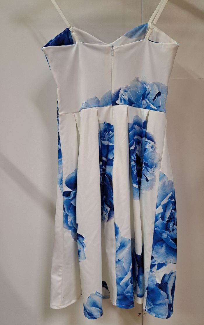 👗Robe fleurie 👗Taille S 👗Jamais portée 👗Blanc et bleu 👗Coques intégrées dans le bustier