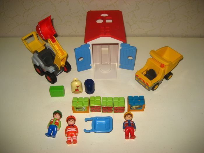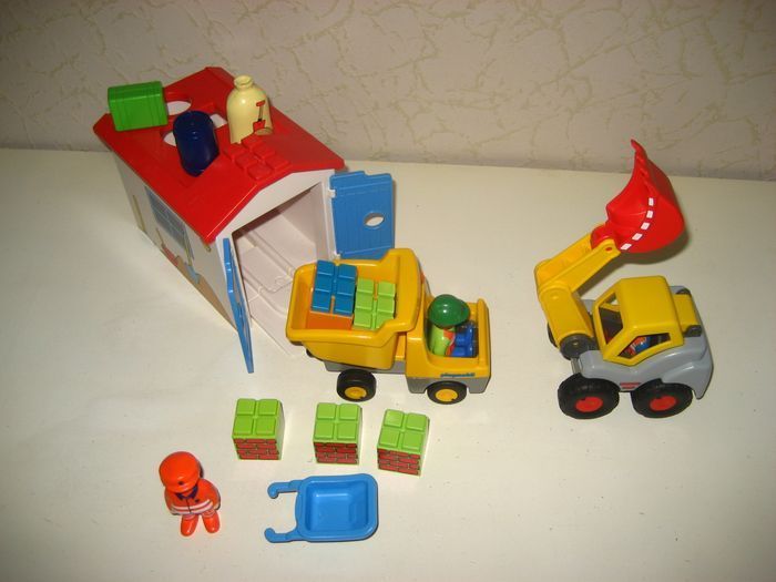 Playmobil 123 garage ,micros usures sur le toit,camion,pelleteuse etc.. en très bon etat.Prix ferme
