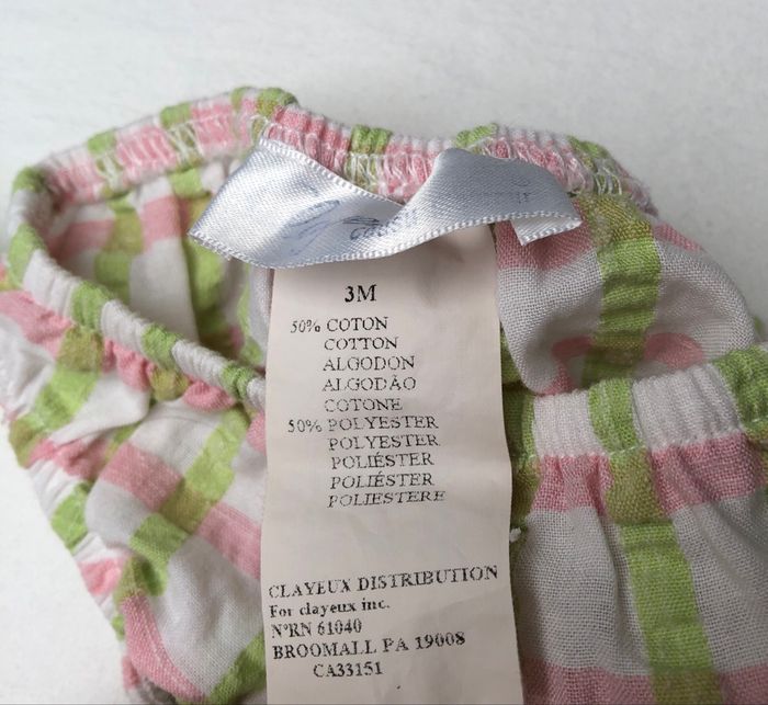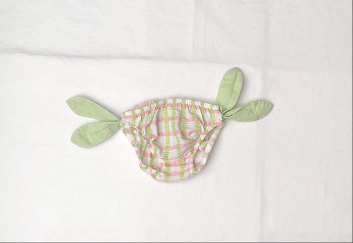 Cache couche Clayeux, Taille 3 mois, En coton/ polyester. Fond blanc avec un quadrillage rose bonbon et vert clair. Trop mignonne avec ses nœuds sur les côtés. En très bon état (pas neuve), pas de tache ni de trou. 🌸 N’hésitez pas à regarder mes autres annonces, j’ai beaucoup de choix.