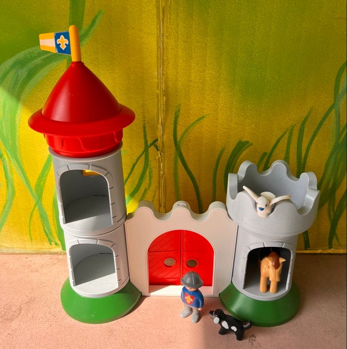 Chateau fort playmobil 123 1 personnage, 1 chien, 1 cheval, 1 oiseau