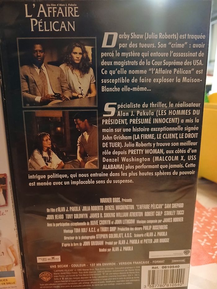2 VHS films Avec Julia Roberts 1 : L'affaire pélican 2 : Coup de foudre à Notting Hill En bon état
