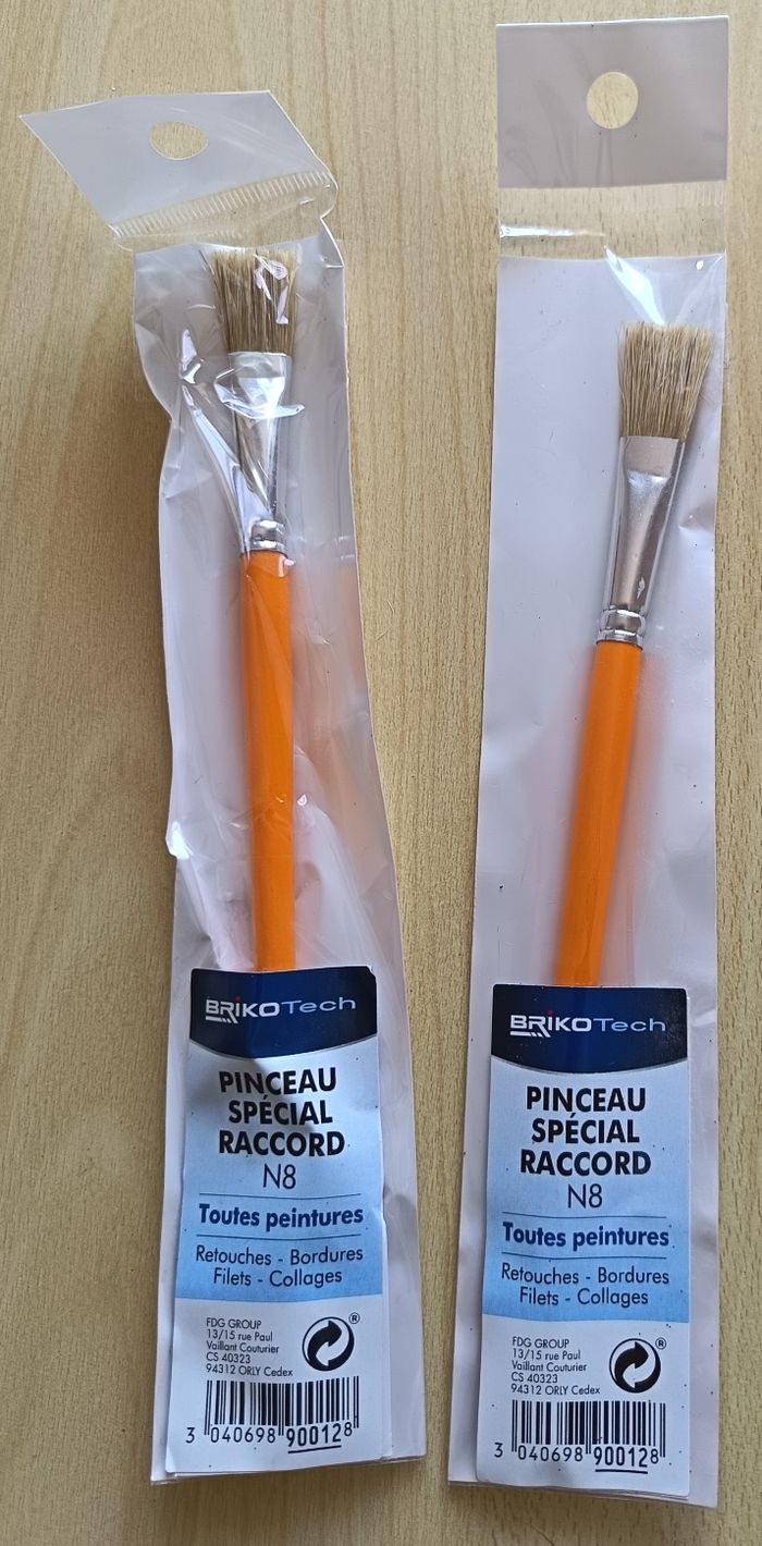 Lot de 2 pinceaux spécial raccord pour toutes peintures, neuf, jamais utilisé, encore dans son emballage d'origine, peuvent être vendus séparément.