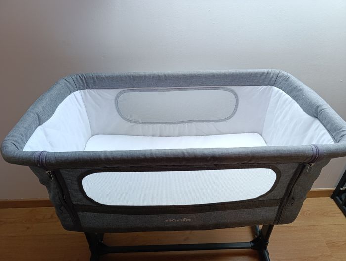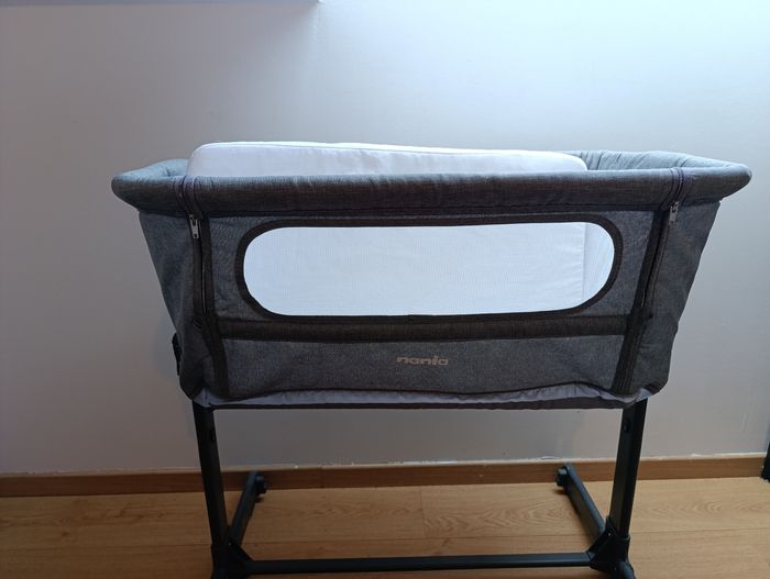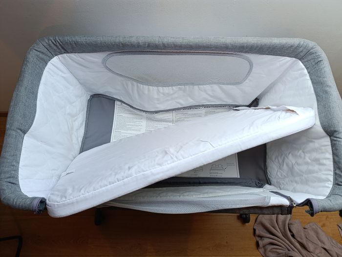 Cododo en très bon état. Possibilité de 5 positions de hauteur pour s'adapter à tout les lits. Déhoussable complètement. Inclinaison possible. Sangle d'attache au lit. Sac de transport pour le transporter partout. Matelas. 2 draps donné avec couleur gris (pas mis sur les l'annonce possibilité d'envoyer des photos) Cododo démontable super facilement et l'inverse aussi.