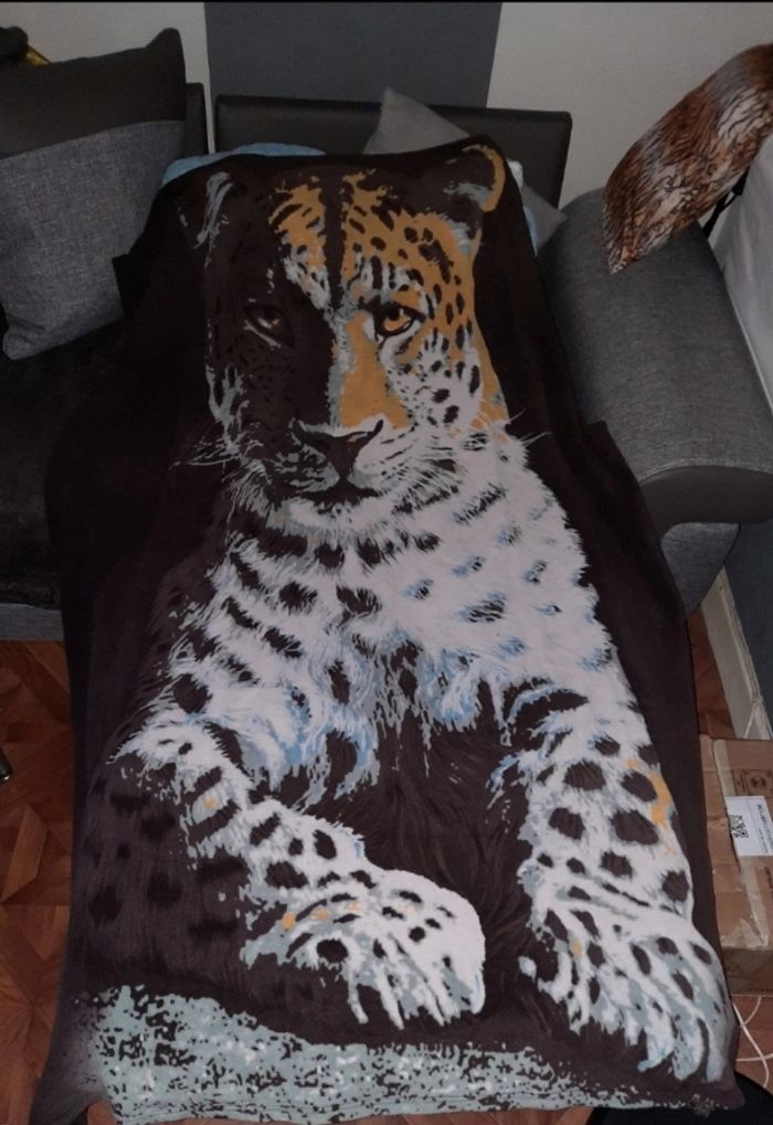 Plaide tigre Longueur 1,75 cm Largeur 1,30 cm Très bonne état N hésitez pas à faire un tour dans mon dressing et achetez en lot vous ferez des économies sur les fdp 😉