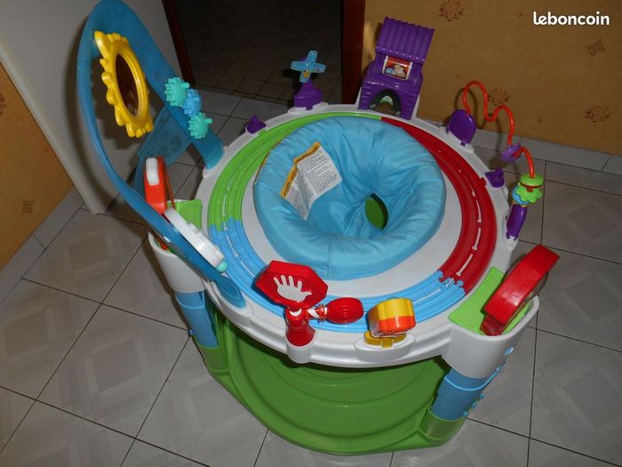Vends porteur d'activité + circuit de train avec accessoires, les pieds sont ajustables, le siège bébé pivote à 360°, à partir de 6 mois, propre, très peu servi, ranger dans sa boite d'origine.