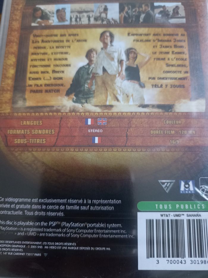 UMD vidéo du film Sahara, neuf sous plastique. Remise en main propre ou envoi possible.
