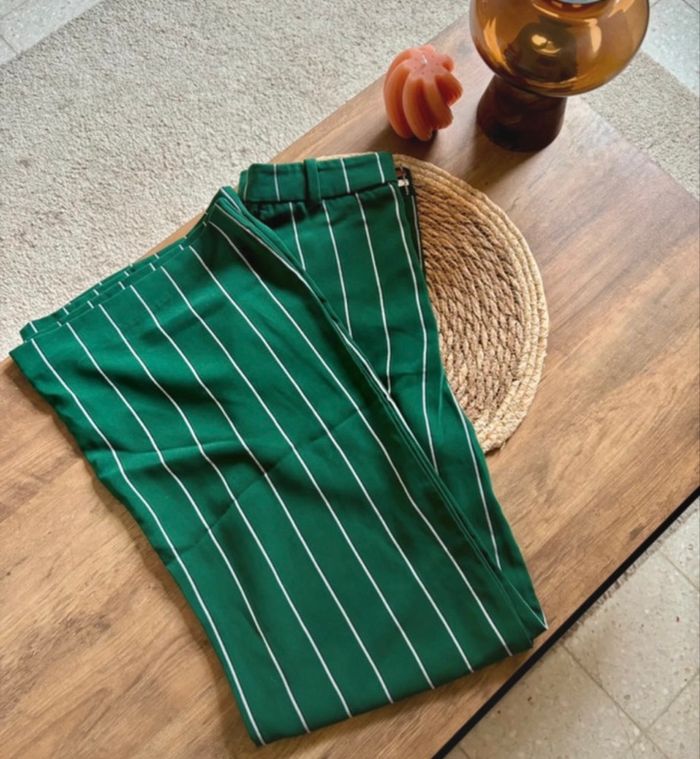 Pantalon Zara léger vert et blanc