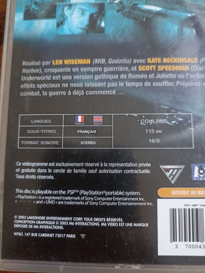 UMD vidéo du film Underworld, en très bon état. Remise en main propre ou envoi possible.