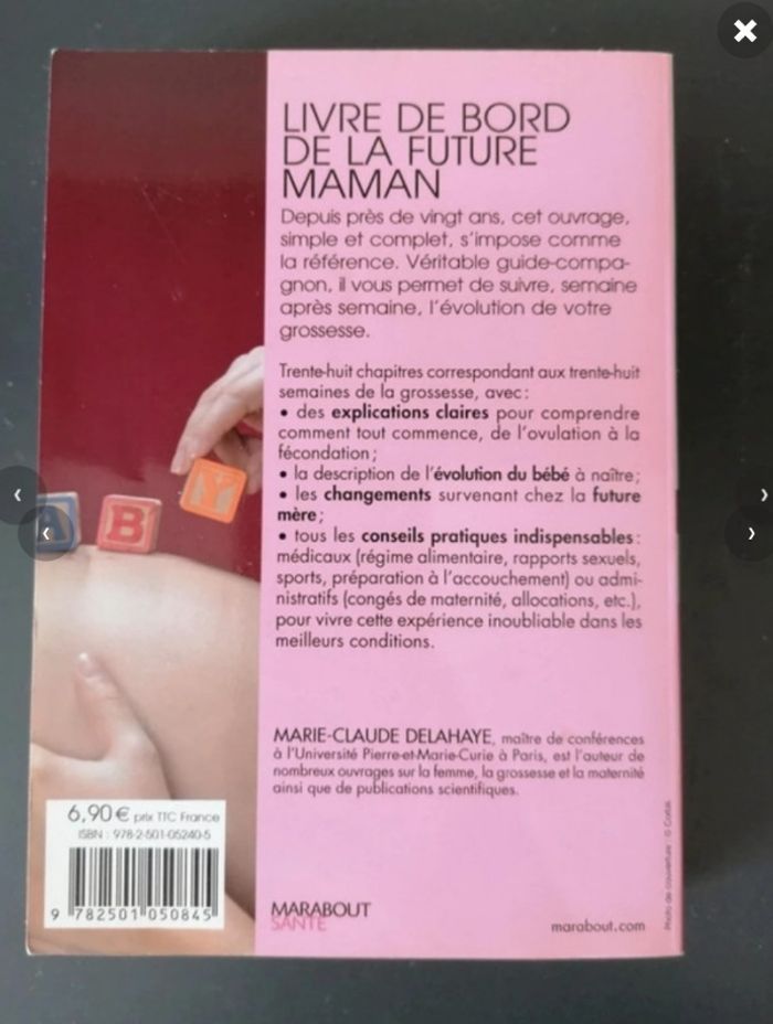 Bonjour, Je vends ce livre sur la maternité "livre de bord de la future maman" de Marabout.