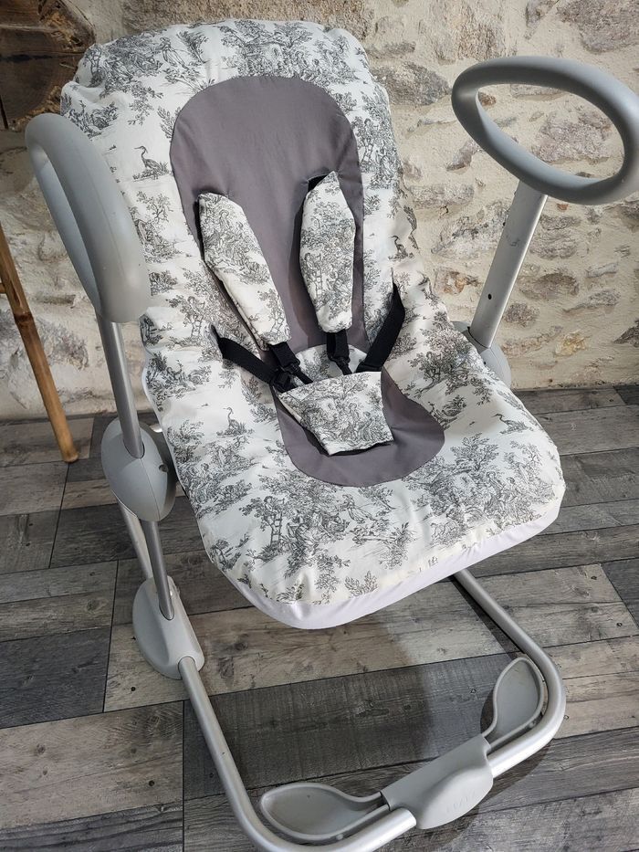 Housse qui s'ajoute à l'assise d'origine du transat up and down de béaba . Accessoires sangles et entre assortis. Page fb Zol&Saan confections. Insta zolsaan Site internet Zolsaanconfections.com .