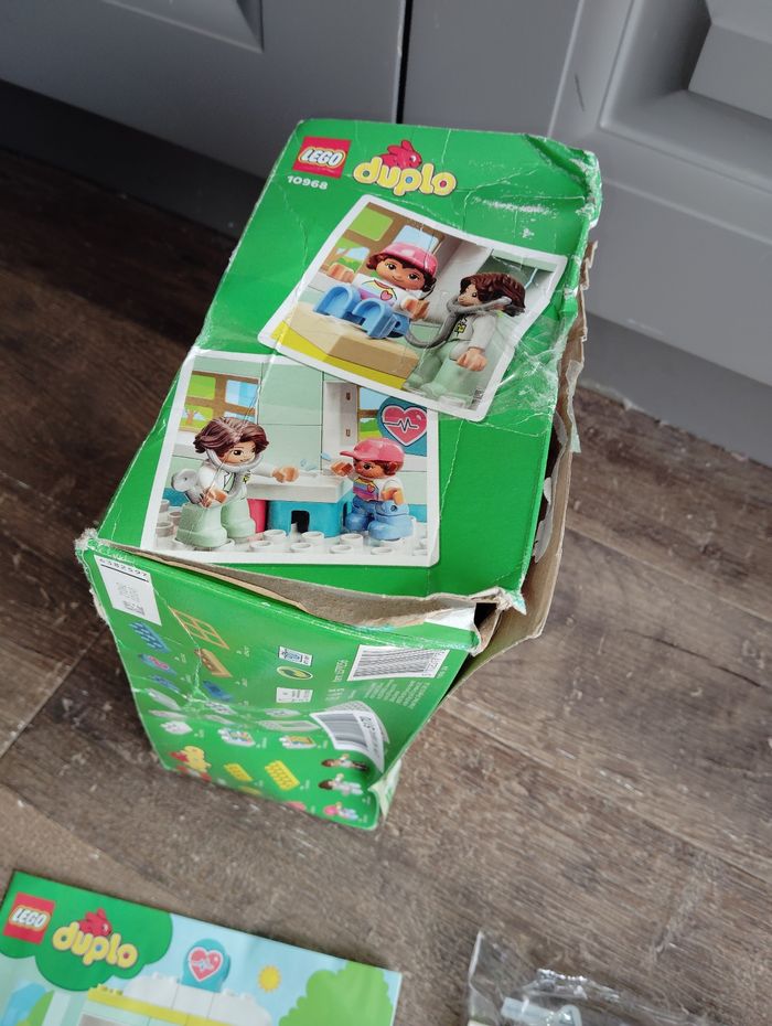 Lego Duplo 10968 la visite chez le médecin, le contenu est neuf comme visible sur les photos, c'est juste la boîte qui a été très abîmée.