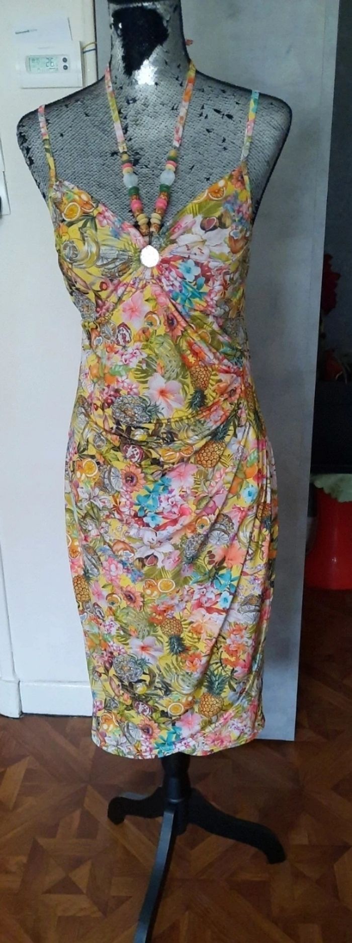 Robe très légère décontracté avec son collier les bretelle sont réglable niveau poitrine y a des petits coussinets de taille 40 en très bonne état N hésitez pas à faire un tour dans mon dressing et achetez en lot vous ferez des économies sur les fdp 😉 😉