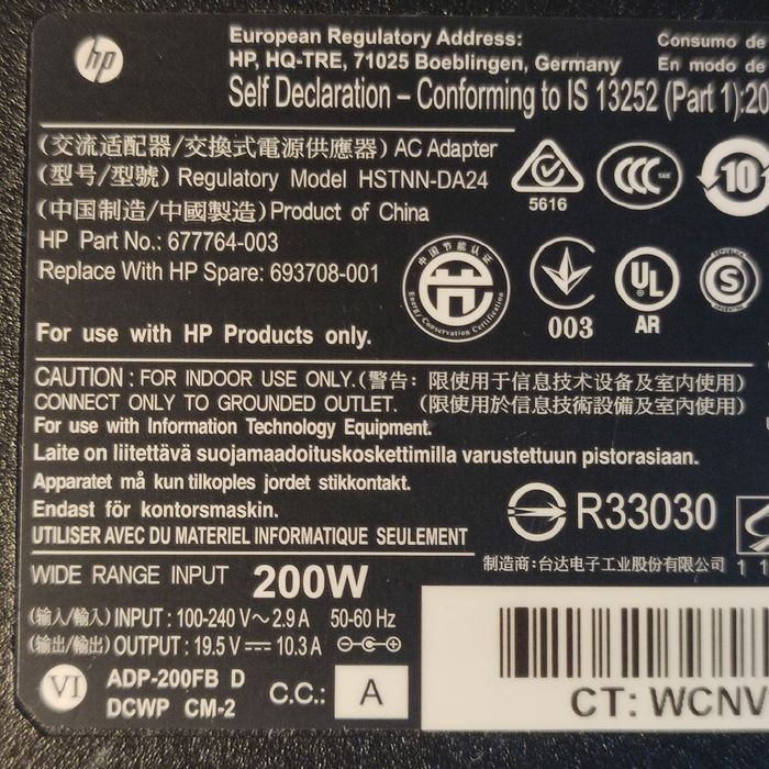 Chargeur HP 200Watt 19,5V - 10,3A _ Model HSTNN-DA24