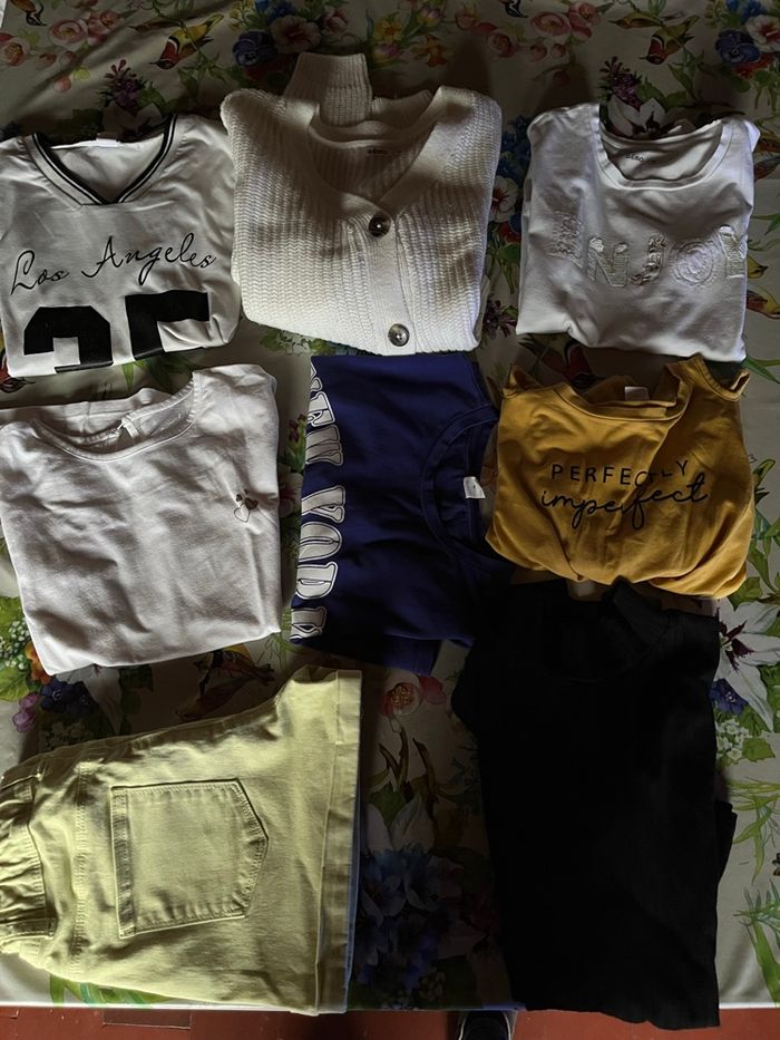 Vend lot 1short jaune 1 maillot manche courte 1 gilet 1 débardeur blanc 1 maillot noir dénudé 1 crop top bleu manche courte 1crop top manche longue jaune foncé Taille 12ans Prix 10euro